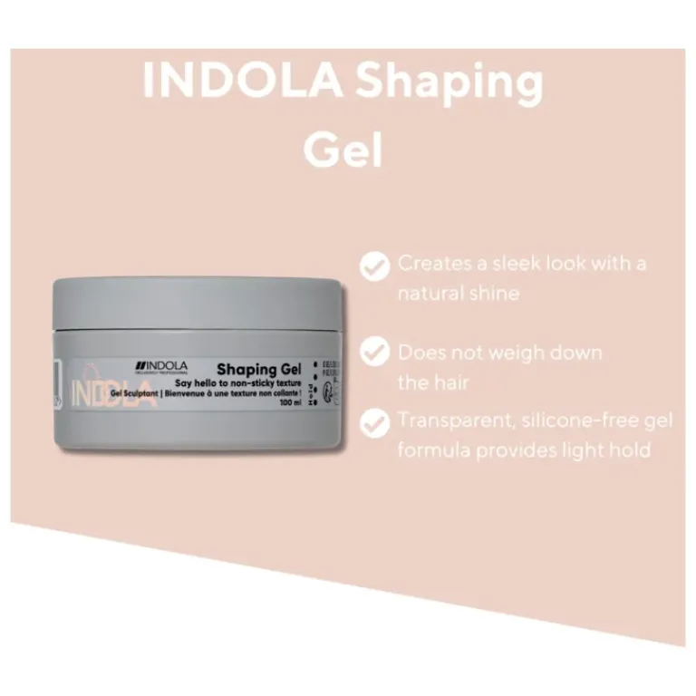 De Indola Care & Style Texture Shaping Gel biedt een sleek look met natuurlijke glans. De transparante, vegan en siliconenvrije formule zorgt voor een styling zonder je haar te verzwaren.
