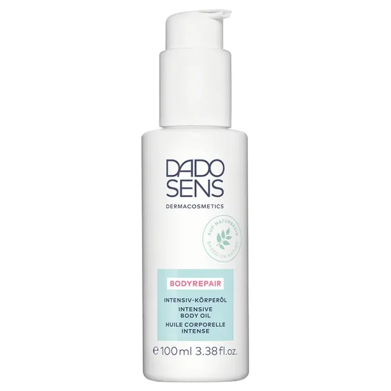 De DADO SENS Dermacosmetics Bodyrepair Intensive Body Oil versterkt de natuurlijke barrière van de huid en behoudt haar vochtgehalte. Een natuurlijk extract uit de bladeren van de Tasmanische peperbes verstevigt de huid en maakt striae minder zichbaar. Jojoba-olie, amandelolie en squaleen versoepelen de huid.