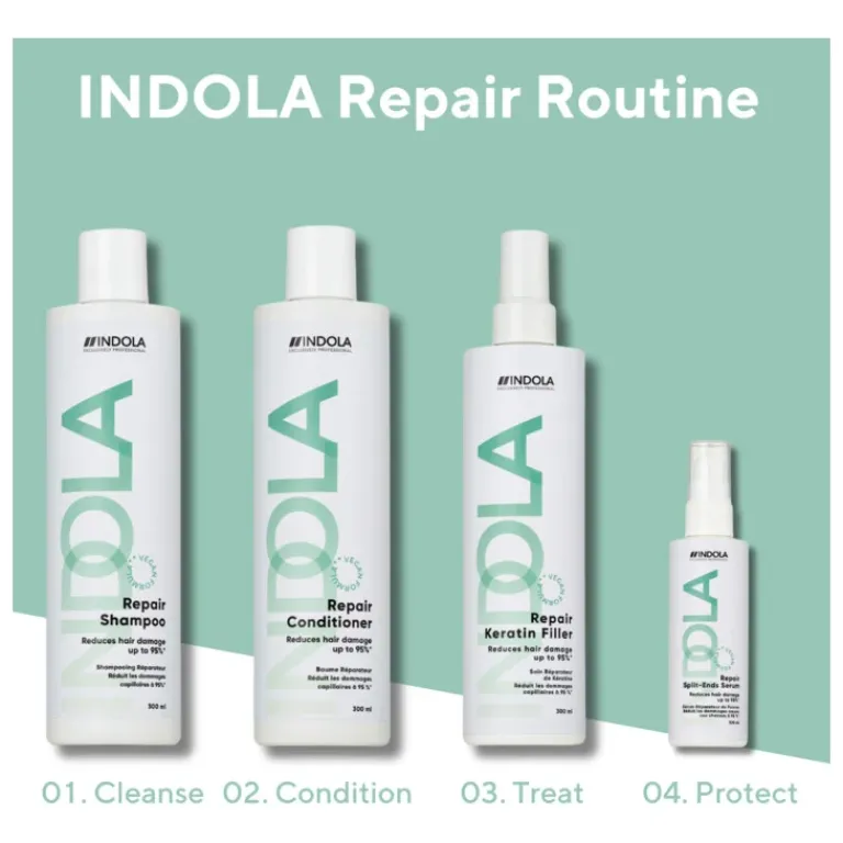 Indola Care & Style Repair Shampoo is ontworpen om beschadigd haar te beschermen tegen breuk. De rijke formule reinigt, voedt, vergemakkelijkt het kammen en verzwaart je haar niet. Het herstelt de kracht en elasticiteit van je haar van binnenuit. Nu met een verbeterde en volledig vegan formule.