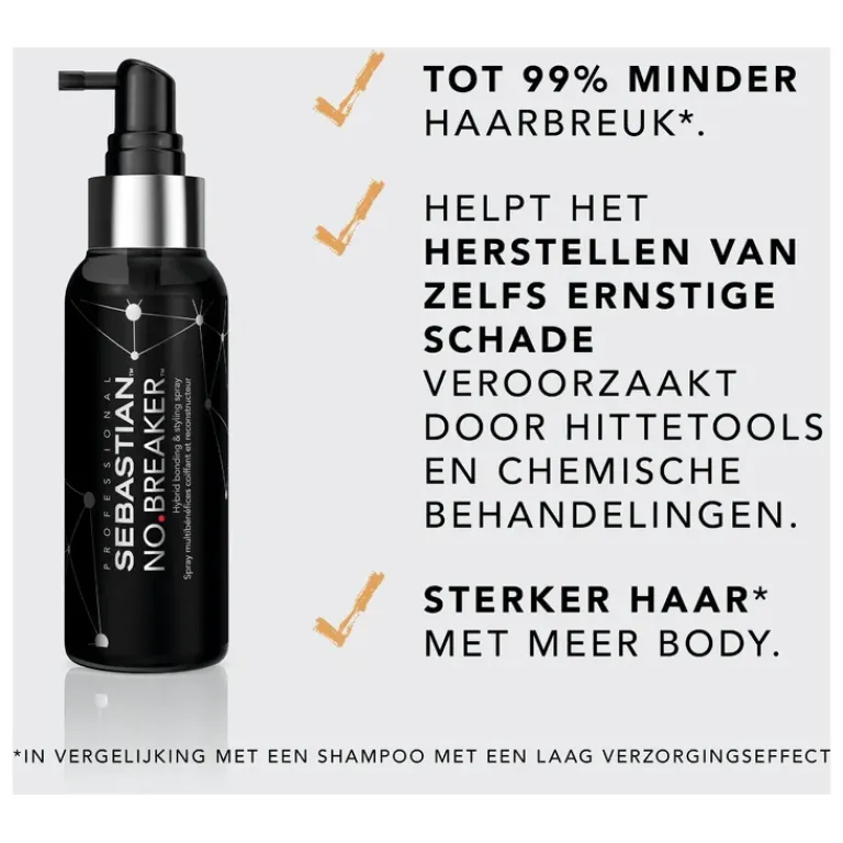 De No Breaker leave-in conditioner is speciaal voor haar wat schade heeft ondervonden door het gebruik van hitte tools en chemische behandelingen. De spray is het beste van twee werelden op het gebied van verzorging en styling. De No Breaker dringt diep in het haar door om nieuwe haarbruggen te ontwikkelen en ernstige schade te herstellen.