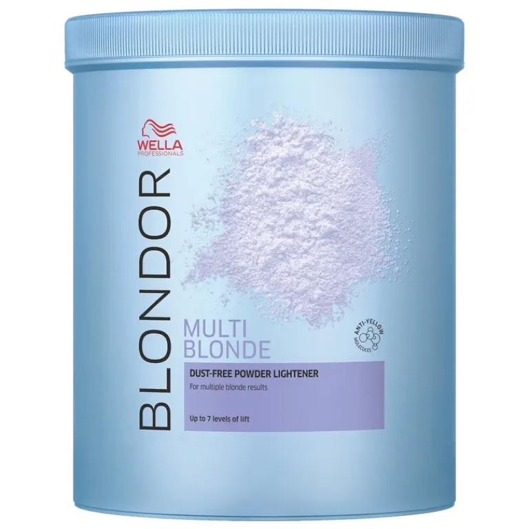 Het Wella Blondor Multi Blonde Blondeerpoeder kan je haar tot wel 7 niveaus lichter maken. Dit product is zowel te gebruiken bij natuurlijk als gekleurd haar. Daarnaast zorgt de blondering er ook voor dat geeltinten tijdens het ontkleuren verminderd worden. De blondeerpoeder is extra zacht voor je hoofdhuid.